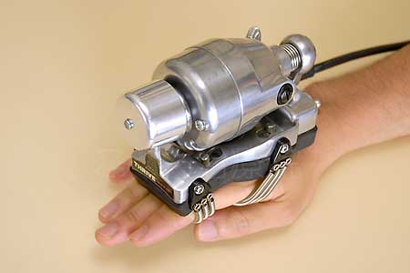手にはめて使うタイプのマッサージャーです。施術者の手指を介して筋肉を振動させますので、効率的にマッサージ効果をもたらすことができます。必要に応じて在宅治療にも持参しています。 |