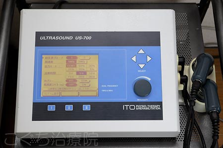 上記と同じ超音波治療器ですが、より高出力できめ細かい設定ができ、指先などの細かい部位まで治療することができます。 |